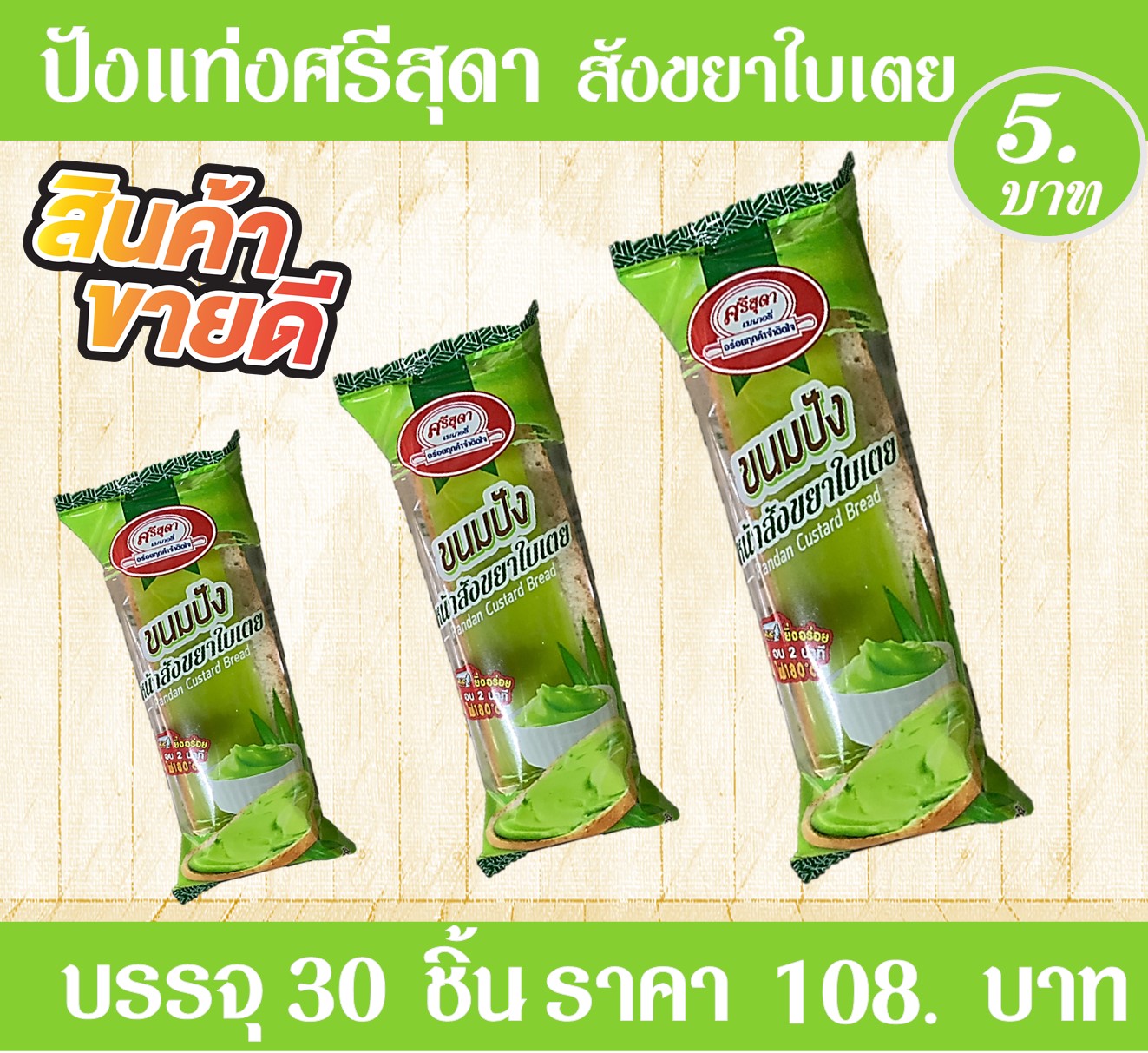 บรรจุ 15 แถว/ลัง ราคา 180 บาท