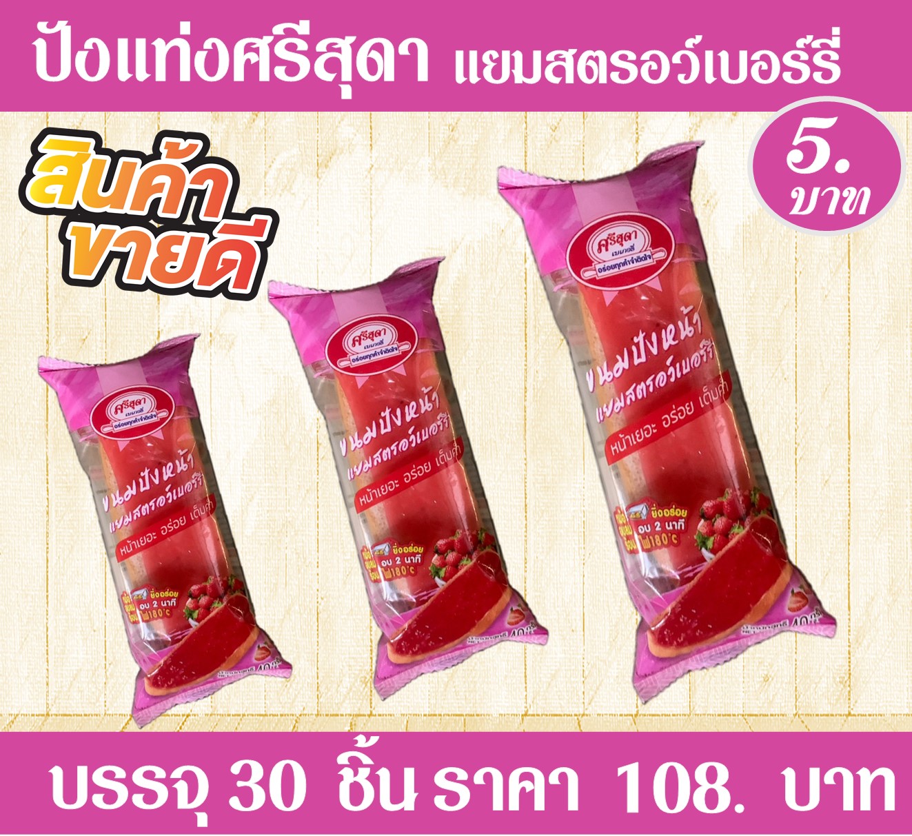 บรรจุ 30 ชิ้น/ตะกร้า ราคา 108 บาท ช็อค, สตรอ