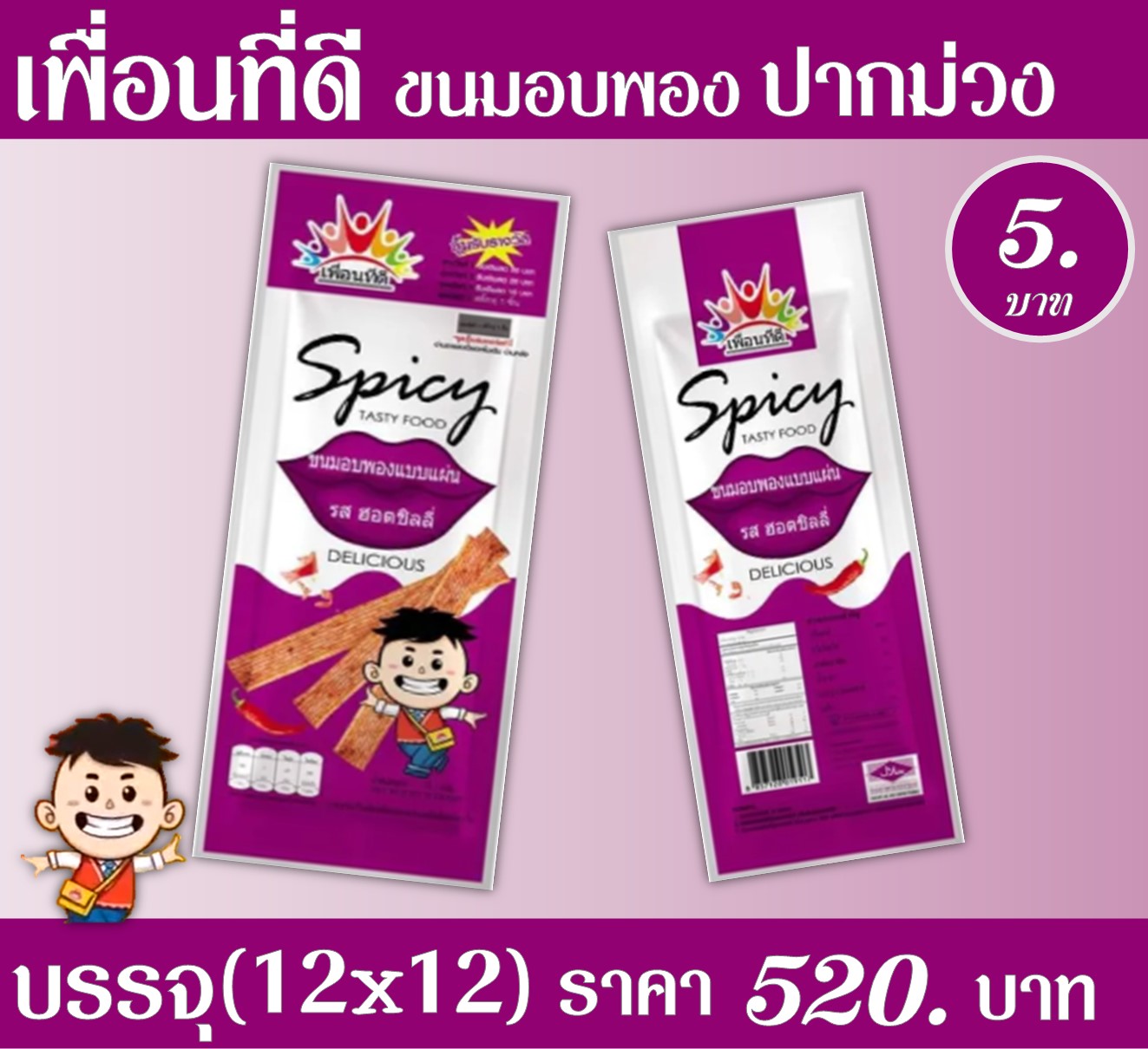 เพื่อนที่ดีขนมอบพองแบบแผ่น รสฮอตชิลลี่ ปากม่วง