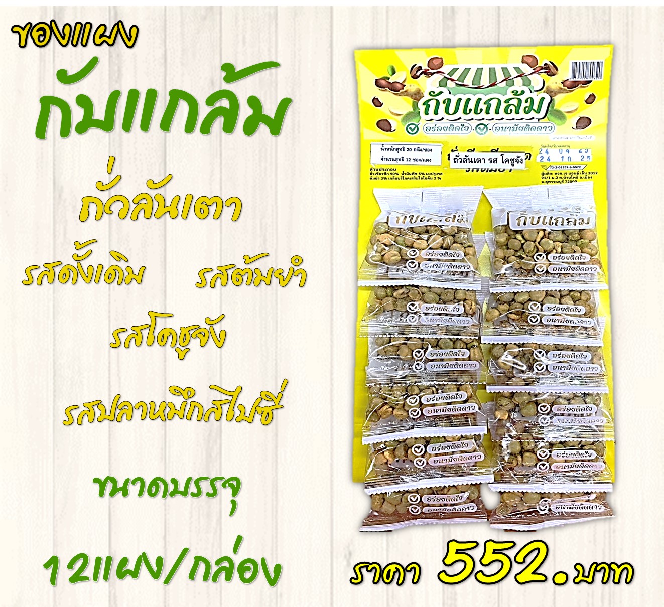 รสดั้งเดิม,ต้มยำ,โคชูจัง,ปลาหมึกสไปซี่ ขนาดบรรจุ(12x12) ราคา 552 บาท