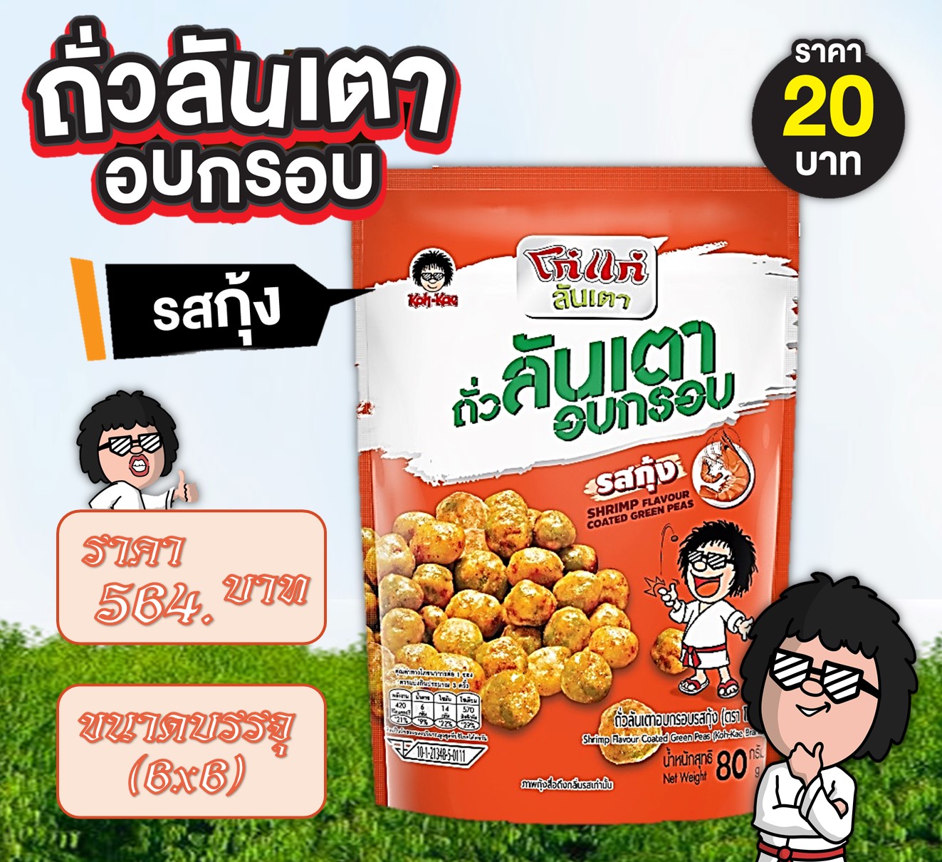โก๋แก่ 20 บาท ถั่วลันเตารสกุ้ง