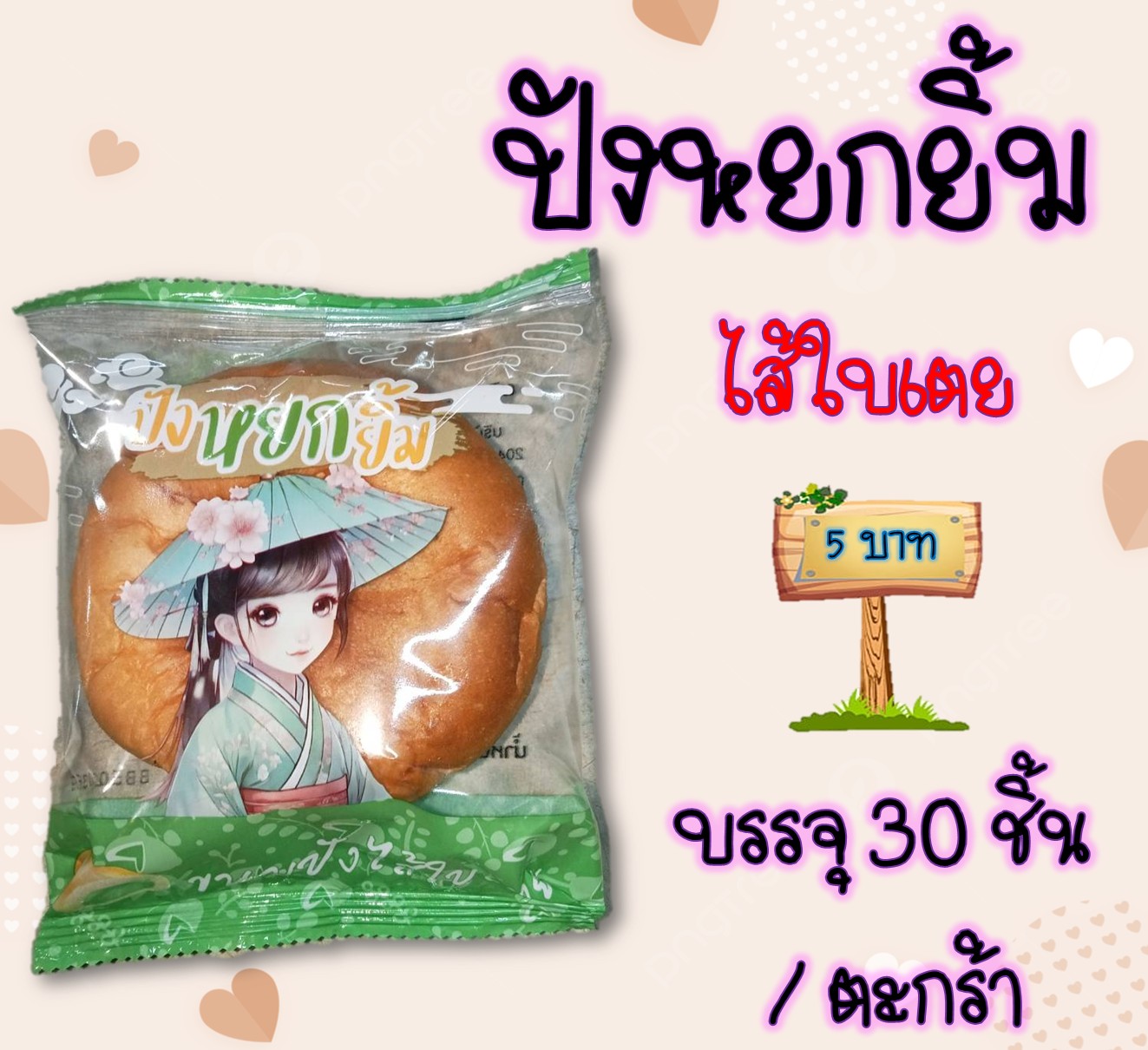 บรรจุ 30 ชิ้น/ตะกร้า ราคา 108 บาท เตย, เผือก, ถั่วดำ ,สับปะรด , ทุเรียน