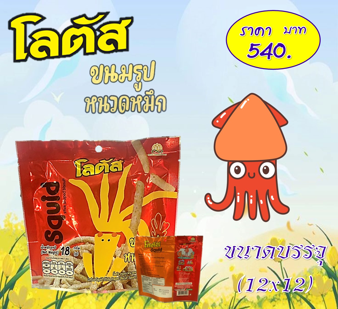 โลตัส 5 บาท ขนมรูปหนวดหมึกรสหมึก