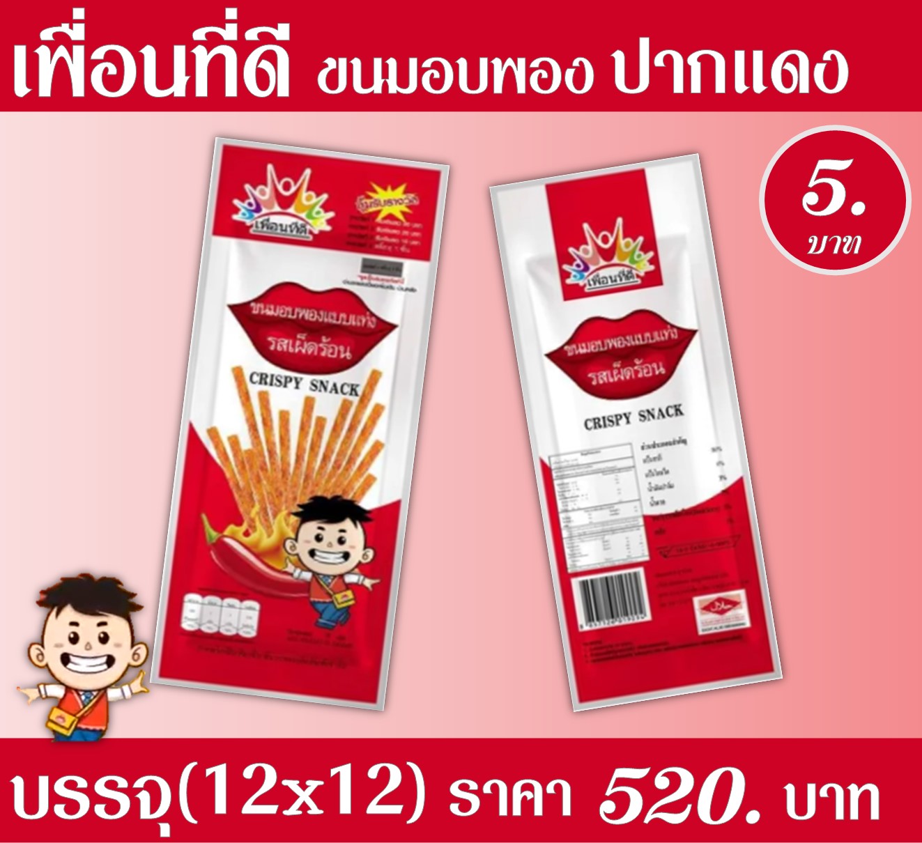 เพื่อนที่ดีขนมอบพองแบบแท่ง รสเผ็ดร้อน ปากแดง