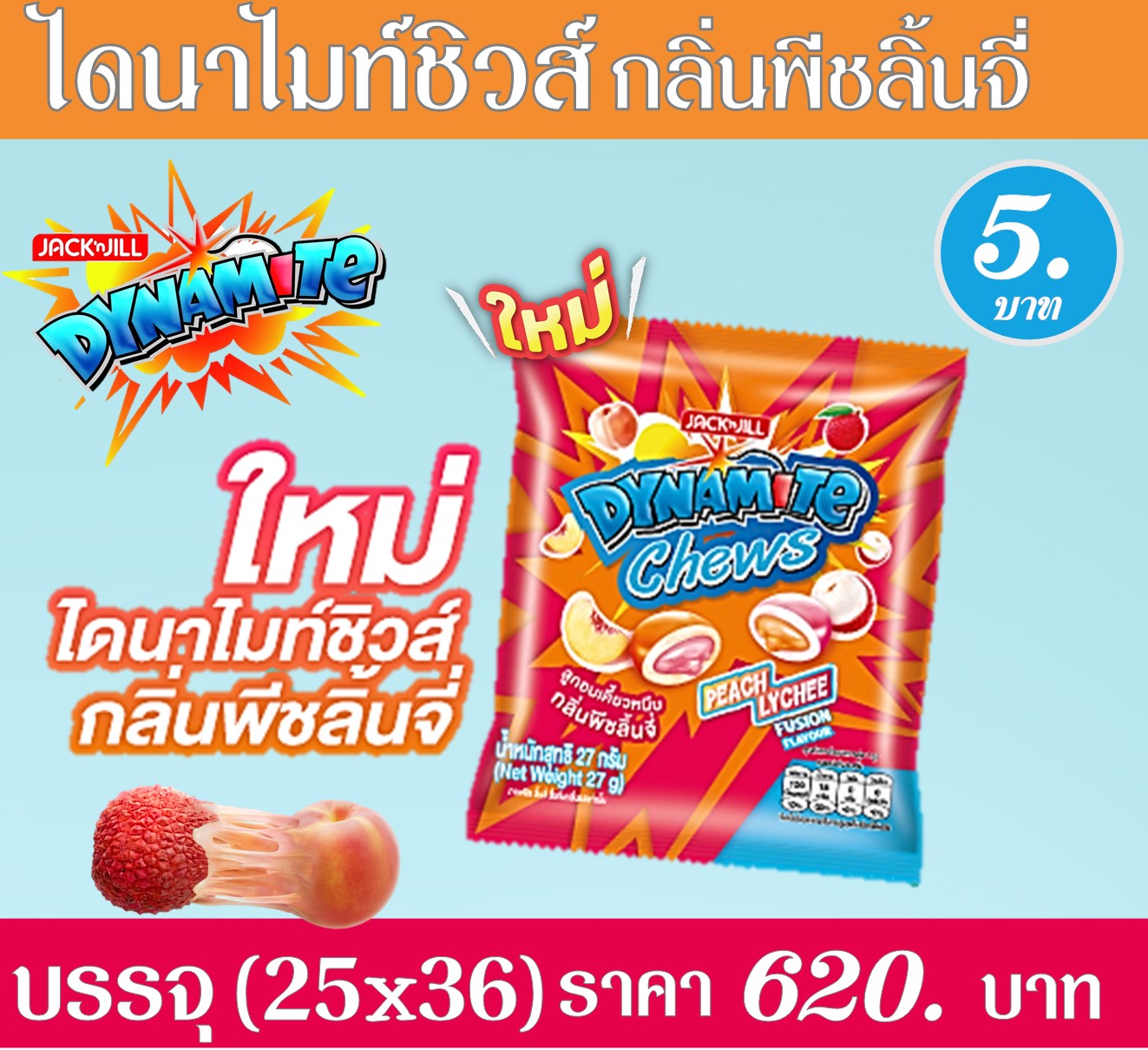 ไดนาไมท์ชิว ลูกอมเคี้ยวนุ่มรสพีชลิ้นจี่