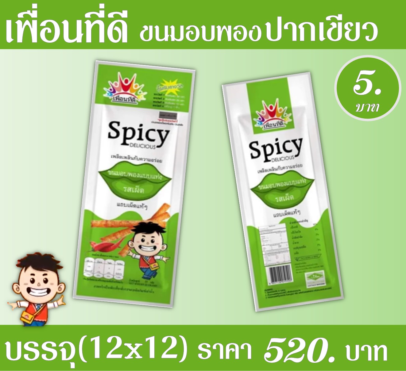 เพื่อนที่ดีขนมอมพองแบบแท่ง รสเผ็ด ปากเขียว